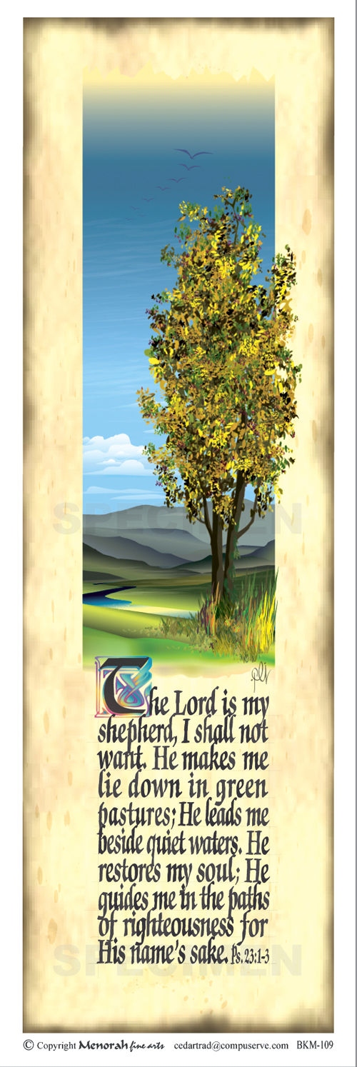 Menorah Bookmark With Bible Text - Pk of 10 - Ps23 - BKM109